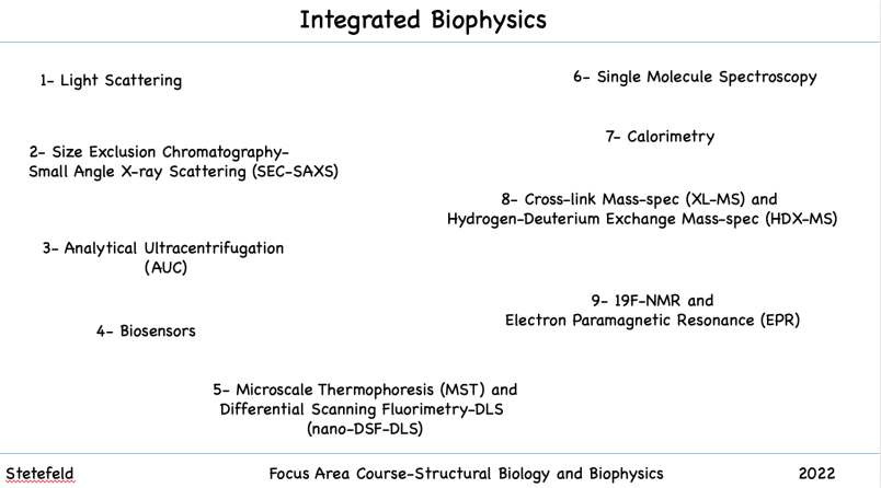 This course covers theoretical aspects and practical applications of all biophysical instruments available in the Stetefeld lab.